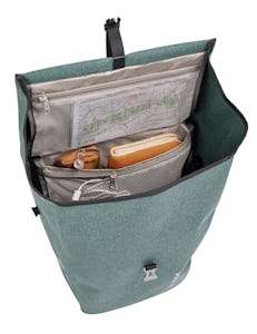 Met de ReCycle Pro Single heeft VAUDE een waterdichte, robuuste en milieuvriendelijke fietstas voor dagelijks gebruik gemaakt, waarop 5 jaar volledige garantie zit. Een overzichtelijk hoofdvak met een klapdeksel, evenals twee vakken met ritssluiting en een afneembare schouderriem zijn ook voorhanden. De tas heeft een volume van 18,5 liter – dat is bijvoorbeeld genoeg om kleine aankopen en kantoorbenodigdheden op te bergen.