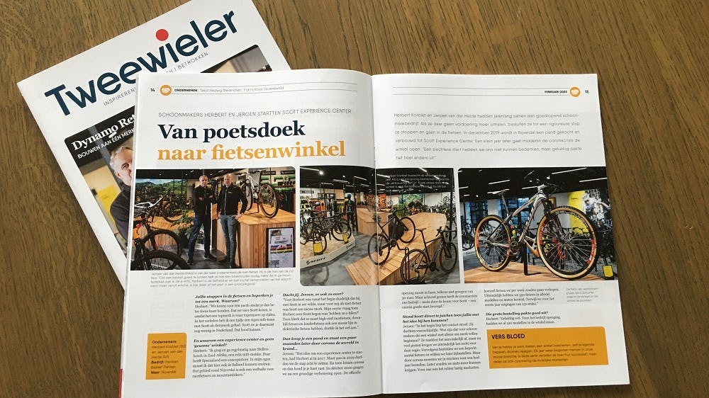 In de eerste uitgave van 2023 gaan we op bezoek bij een Scott Experience Center in Nijverdal, schrijven we over minder geluidsoverlast in de werkplaats en hebben we een interview met Herman Bramer van Dynamo Retail Group. Verder in deze uitgave onder andere een interview met good-old Jacob van der Veer, de productie van de tubes van wereldkampioen Mathieu van der Poel, tips van Paul Wagenaar voor een rustiger 2023, het verhaal van 25 jaar Merida Benelux en autodealers die in de fietsen stappen.
