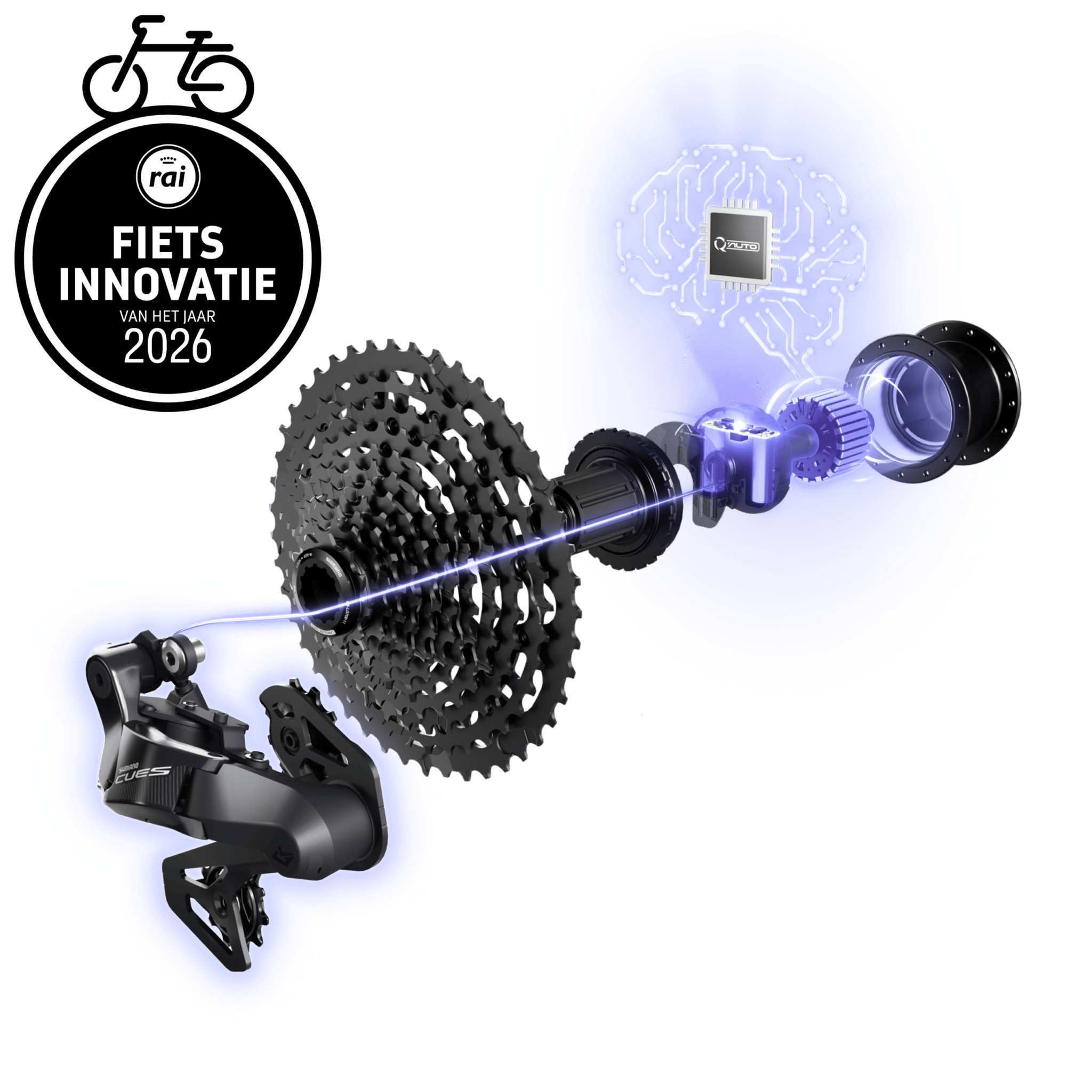 Shimano introduceerde met Q’AUTO een batterijloos automatisch schakelsysteem voor urban-, trekking- en gravelbikes. De energie wordt opgewekt via een freehub met dynamofunctie, waardoor opladen of batterijonderhoud overbodig is.