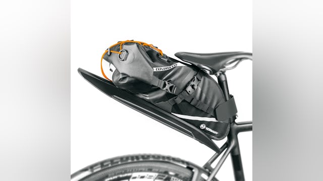 De EXPLORER zadeltas wordt met een spatbord geleverd. De tas bevestig je aan de zadelpen, zonder deze te beschadigen. Het spatbord kan zonder gereedschap aan de tas worden gezet en houdt berijder, fiets en tas schoon. In het extra bagagenet kun je bijv. je regenjas snel bereiken. Met het ontluchtingsventiel maak je je tas zo compact als mogelijk. Er is ook een mogelijkheid voor het bevestigen van een achterlicht. Inhoud 13 liter. Adviesprijs incl. spatbord: 79,99 euro.